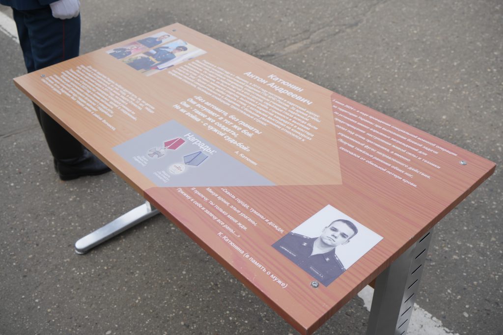 Мы помним кадета Антона Катюнина и чтим память о молодом офицере, который отдал свою жизнь, выполняя воинский долг. В учебном классе Кадетского пожарно-спасательного корпуса установлена «парта Героя», на которой записана краткая биографическая справка, фотографии, и награды, полученные Антоном за участие в Специальной военной операции.
