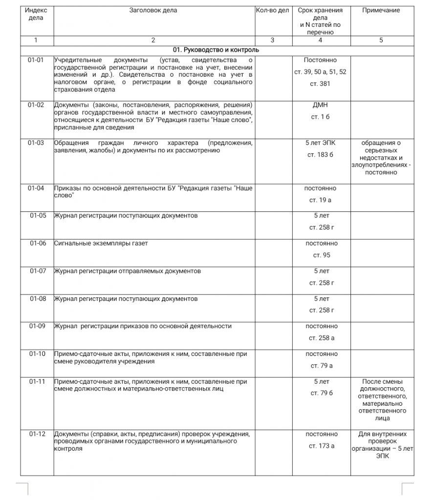 документ: номенклатура дел 2026