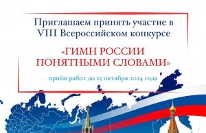 Успейте принять участие в VIII Всероссийском конкурсе «Гимн России понятными словами»!