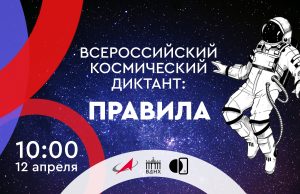 Всероссийский космический диктант пройдет 12 апреля. Начало в 10.00. Организаторами акции выступают Российская государственная корпорация «Роскосмос», Аэрокосмическая корпорация «Новый космос», Центр «Космонавтика и авиация» на ВДНХ.