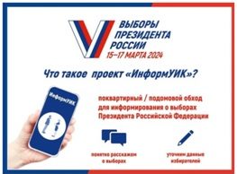 ИнформУИК – это общероссийский проект избирательных комиссий по информированию избирателей, который проходит в период избирательной кампании по выборам Президента Российской Федерации. Он проходит во всех субъектах Российской Федерации, в том числе и в Ивановской области. Члены участковой комиссии с 17 февраля по 7 марта будут осуществлять подомовой обход избирателей.