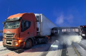 Как сообщает пресс-служба УМВД по Ивановской области, водитель автобуса "ПАЗ" не справился с управлением и совершил столкновение с припаркованным большегрузом.