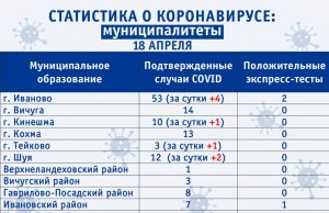 По состоянию на 18 апреля года на территории Ивановской области официально зарегистрированы 164 случая заболевания новой коронавирусной инфекцией, за сутки диагноз поставлен 15 пациентам. По...