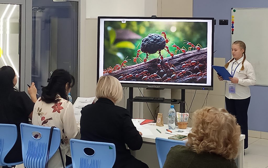 На секции «Экология животных» тоже третье место заняла София Кузнецова из Озерновской средней школы. Под руководством учителя биологии Ольги Кузнецовой она подготовила работу «Биотопическое размещение божьих коровок на части территории федерального заказника «Клязьминский».