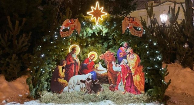 Эти события сегодня отражаются в строе Рождественской церковной службы, в иконописных изображениях Рождества Христова, в рождественских сценах-«вертепах», в звёздах на вершинах украшенных рождественских ёлок, в подарках, которые мы дарим друг другу и особенно детям.