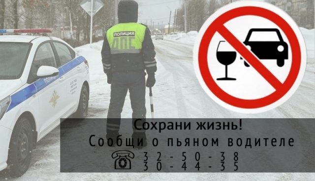 Если Вы стали свидетелем управления транспортным средством водителем, находящимся в состоянии алкогольного опьянения, либо лицо, управляющее транспортным средством, вызывает у Вас подозрение, сообщите о данном факте ближайшему наряду ДПС или позвоните по одному из указанных телефонов: Дежурная часть Госавтоинспекции УМВД России по Ивановской области: (4932) 32-50-38, 30-44-35.
