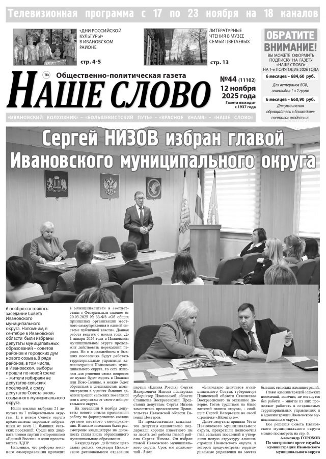 Номер газеты «Наше слово» от 12 ноября 2025 года
