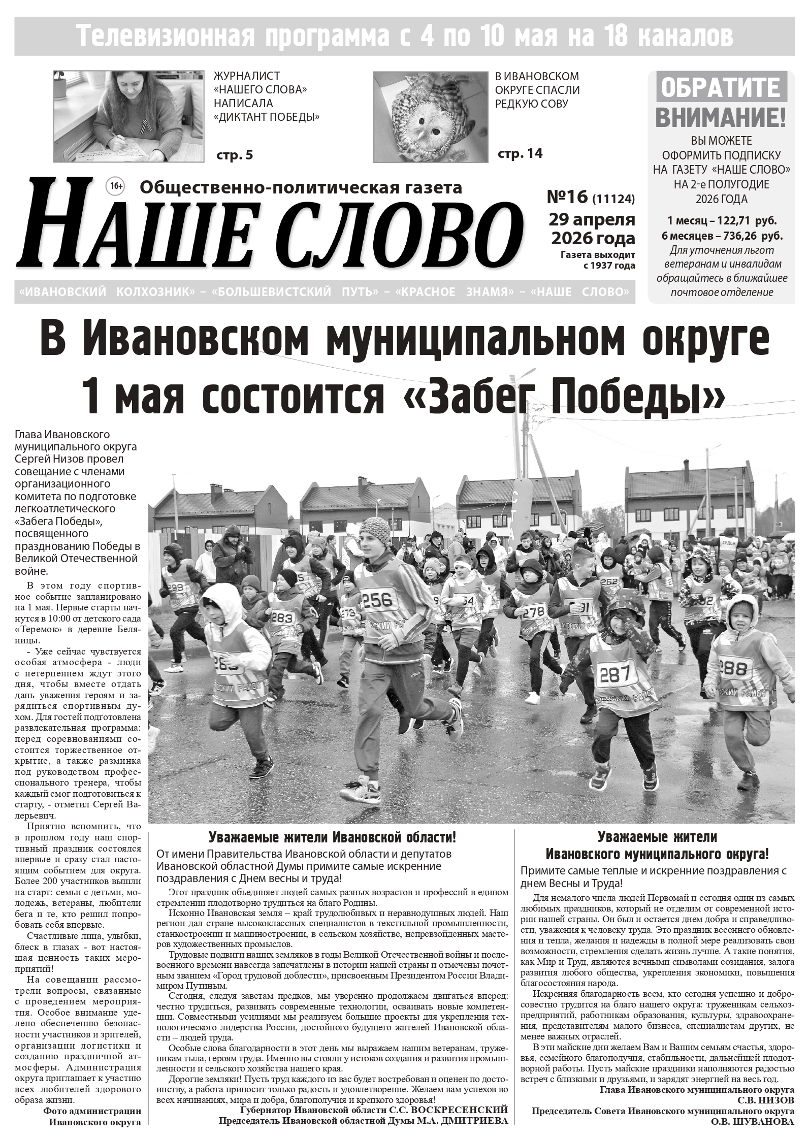 Номер газеты «Наше слово» от 29 апреля 2026 года