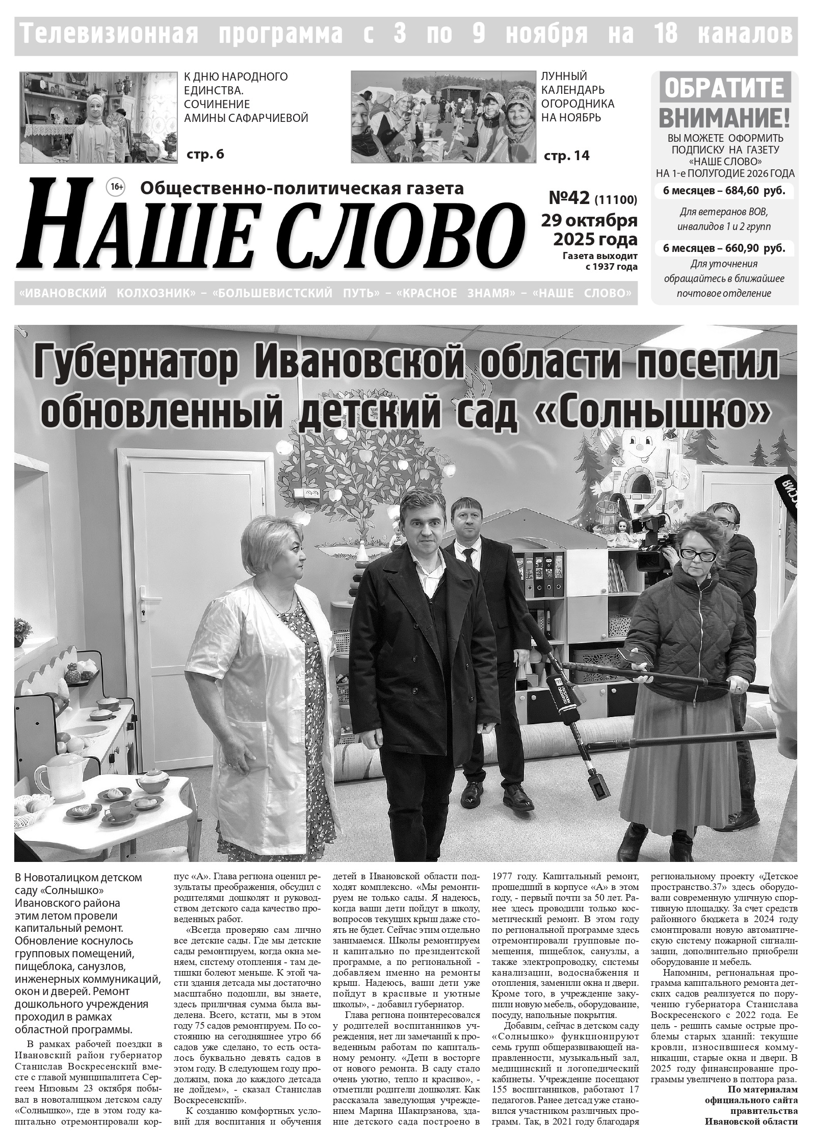 Электронная версия — Наше слово от 29 октября 2025 г.