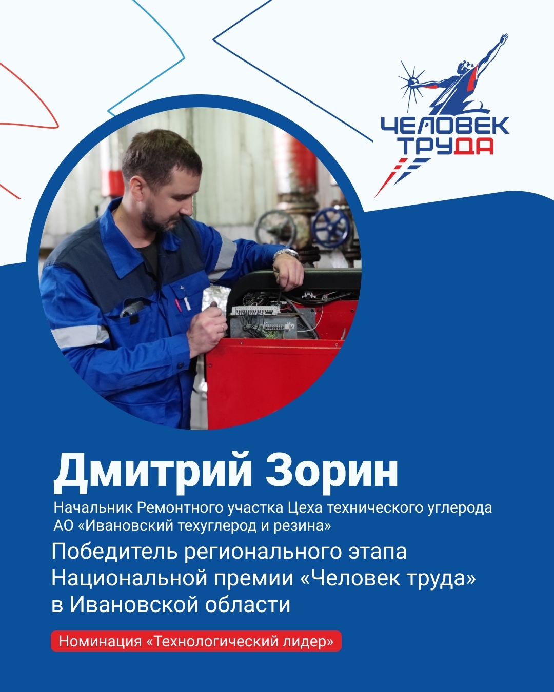 Дмитрий Зорин – номинация «Технологический лидер», начальник Ремонтного участка Цеха технического углерода АО «Ивановский техуглерод и резина», с. Михалево, Новоталицкое сельское поселение