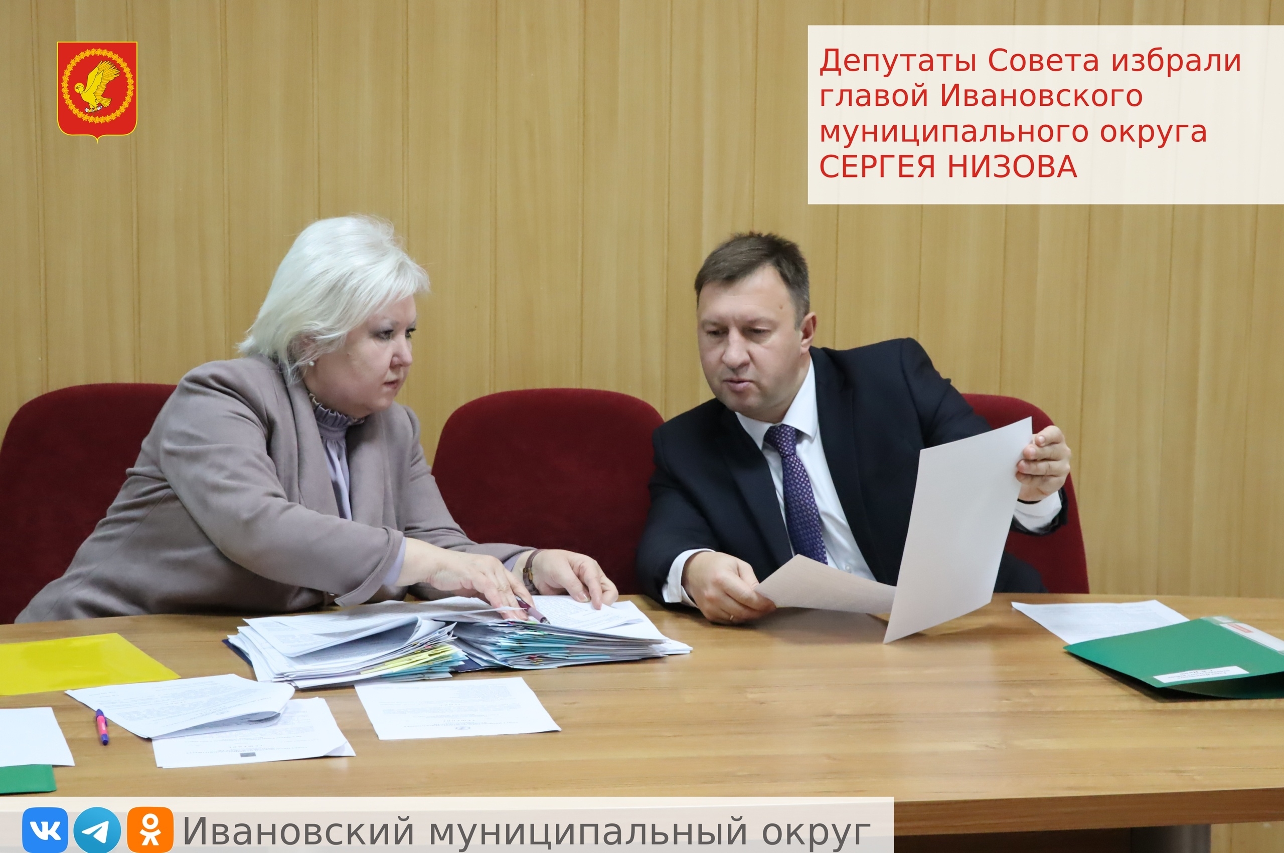 На Совете Ивановского муниципального округа депутаты нового созыва продолжили работу по формированию состава органов местного самоуправления. В начале заседания были рассмотрены кандидатуры на должность главы вновь образованного муниципального образования. Из предложенных кандидатов депутаты единогласно поддержали кандидатуру Сергея Низова. Он был избран главой Ивановского муниципального округа. Срок его полномочий — 5 лет.