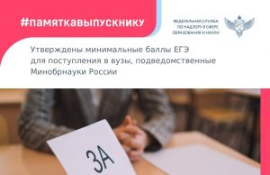 Утверждены минимальные баллы ЕГЭ для поступления в вузы, подведомственные Минобрнауки России,...