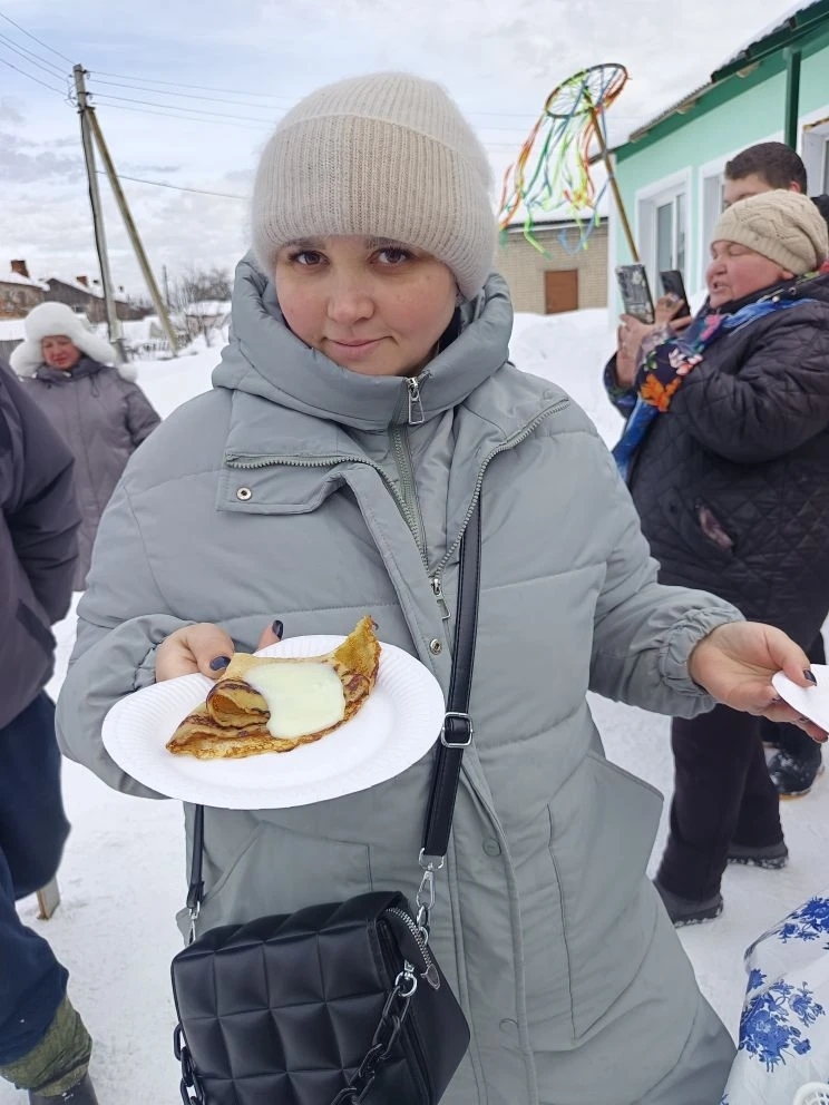 Чтобы не замёрзнуть, жители угощались вкусными блинами со сметаной и сгущёнкой да горячим чаем с конфетами. Кстати, блины готовили Степан Надюков, Наталья Мельникова и Елена Юсупова.