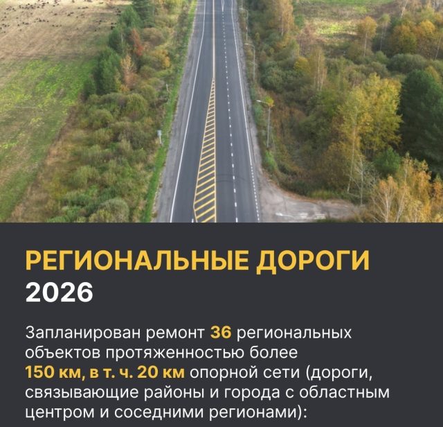 В плане дорожного ремонта на 2026 год – более 150 км региональных дорог и свыше 93 км муниципальных