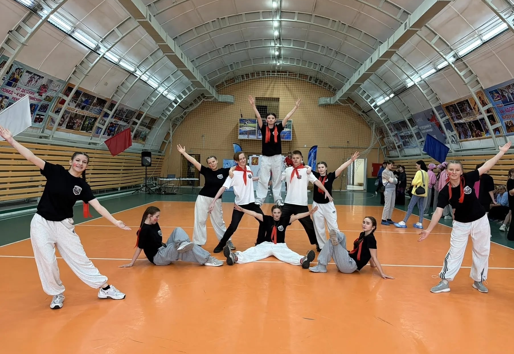 Номера были яркими и запоминающимися. Например, фитнес-команда «Тонус» Богородской средней школы выбрала для выступления музыку и костюмы в стиле 90-х годов.