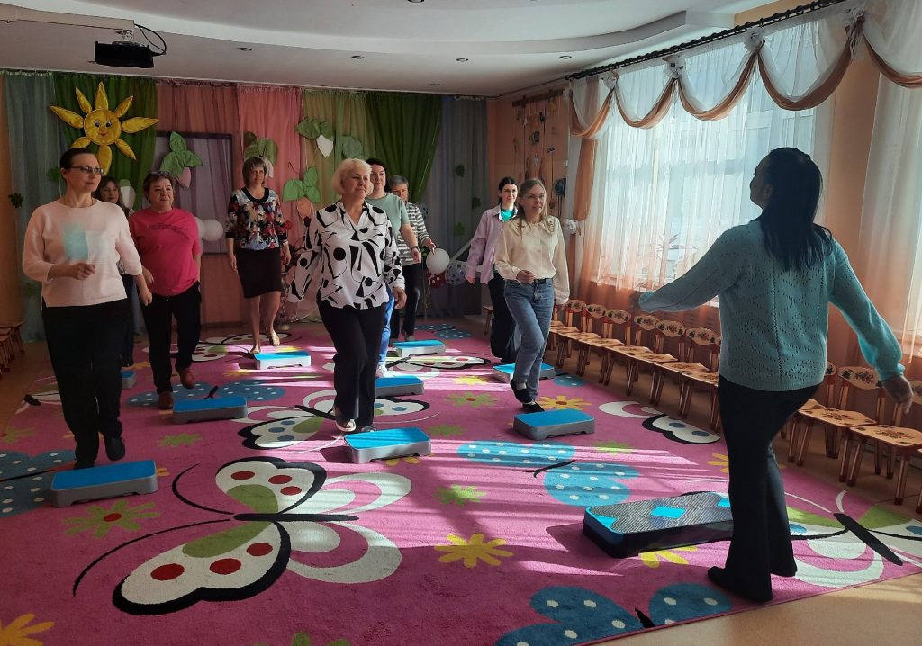 А в Новоталицком детском саду «Солнышко» регулярно проходят спортивные занятия для педагогов. Так, недавно состоялся мастер-класс, посвященный степ-аэробике.